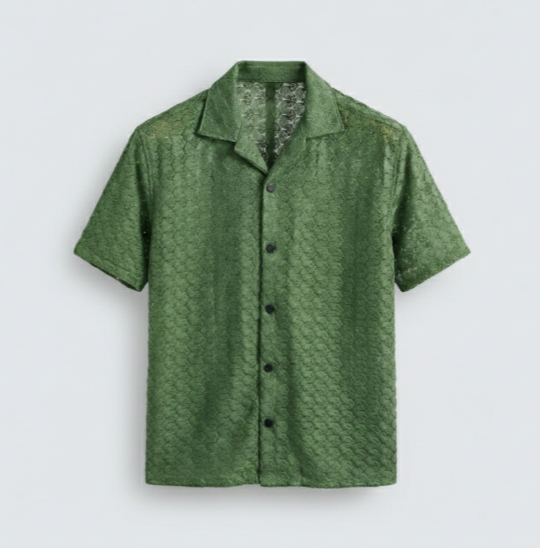 Modern Design: Features a Revere/Cuban collar, button placket, and short sleeves, delivering a sleek and relaxed look.